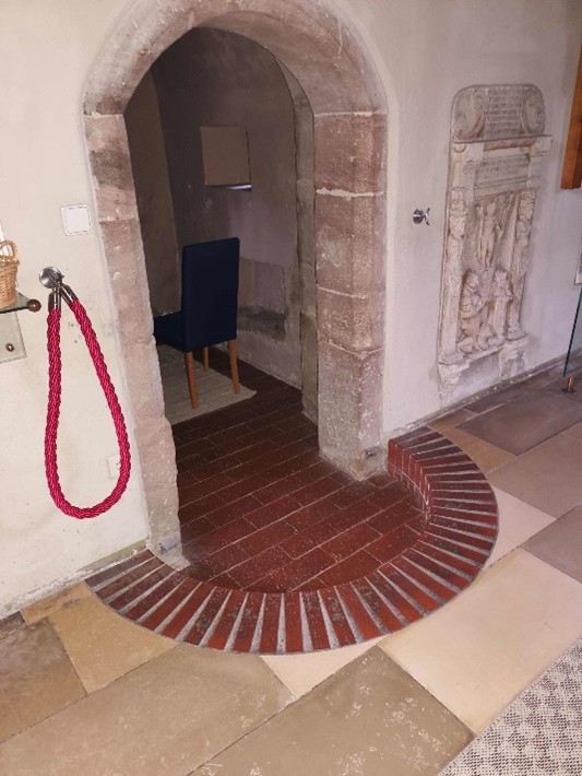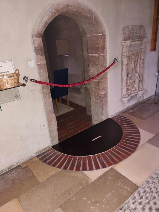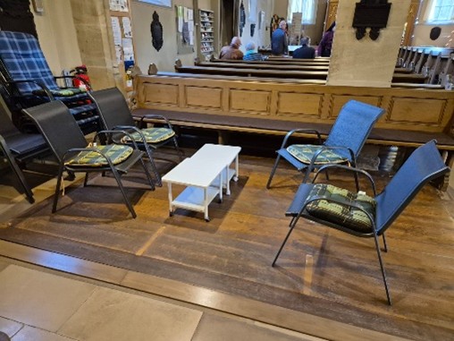 - Unser Kirchenkaffee erfreut sich großer Beliebtheit und dem haben wir Rechnung getragen, indem wir Raum geschaffen haben. So kann nun die Trittstufe zur kleinen Besinnungskapelle, im Bedarfsfall durch eine halbrunde Abdeckung verschlossen werden und ein Hineinstürzen wird nun durch eine Kordel verhindert. So entsteht mehr Raum für die Kaffeegäste.