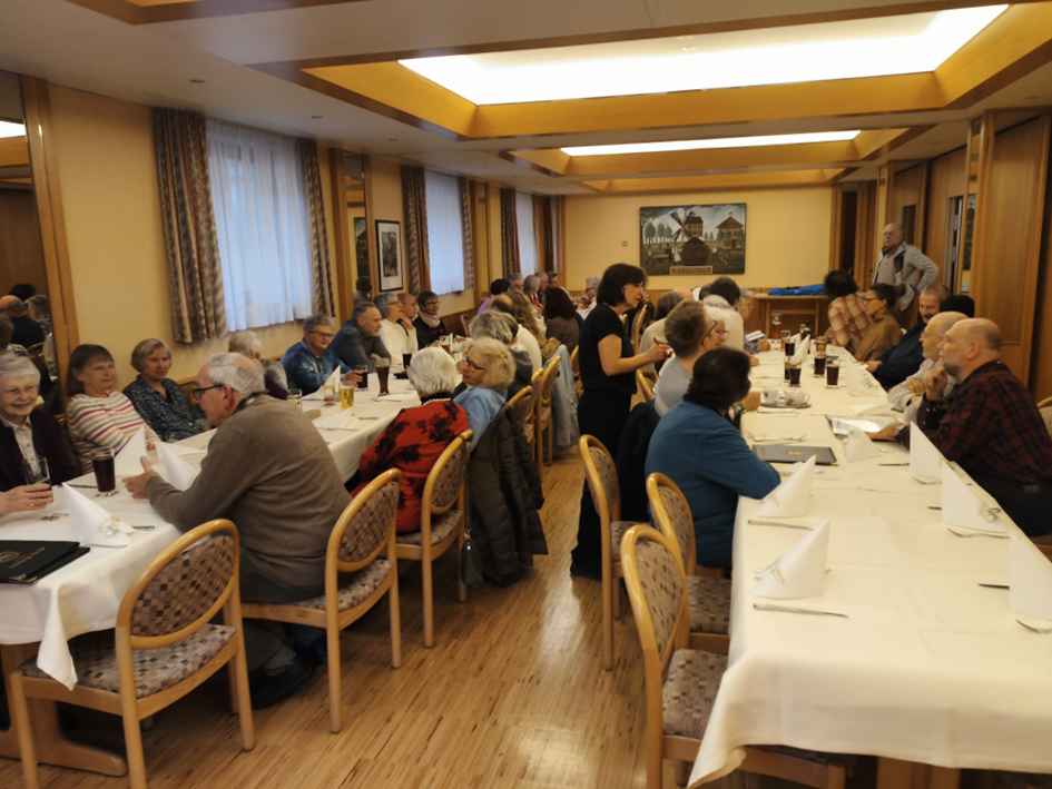 Am 15. Februar wieder einmal ein ganz besonderer Tag. Wir durften -zum Einen- den sehr schönen Gottesdienst erleben, der umrahmt war mit Musik der Gruppe Ukke Mukke, die -wie sich herausstellte, sehr wohl mit ihren Instrumenten auch Kirchenlieder sehr schön begleiten kann. Zum Andern war es auch noch ein Gottesdienst mit persönlicher Segnung, die ja einmal im Monat stattfindet. Und zu guter Letzt stand auch noch der jährliche Mitarbeiterdank an. Dieser fand heuer im Gasthaus Windmühle statt, wo man wieder einmal sehen konnte, wer alles im Getriebe unserer Heilig-Kreuz Gemeinde mitarbeitet. Unser Pfarrer Hermann Spingler dankte allen Aktiven für ihre treue Mitarbeit und zum Dank, waren alle zu einem Essen in der Windmühle eingeladen.